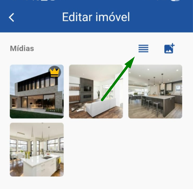 ✅ Ordenação de imagens: agora você pode reordenar as fotos do imóvel diretamente pelo aplicativo; basta clicar no ícone de ordenação, segurar as imagens e arrastar até a posição desejada. Não esqueça de clicar em “Certinho” para salvar a nova ordem.